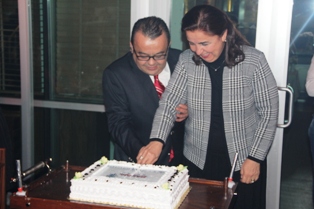 Karık, konuşmasının ardından grubun adının yazılı olduğu pastayı kesti.